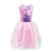 An eye-catching and elegant piece. This Romantic Ballet Sequinned Party Dress is embellished with an iridescent disc sequins centre panel. The long style skirt features silver glitter spotted organza, voluminous tulle under layers and a silky lining. While the elastic enclosed waist and adjustable shoulder straps make the perfect fit.