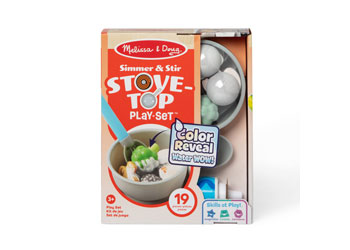 Satisfy hungry imaginations with Melissa & Doug Water WOW! colour-changing play food stir fry! Drop play food into the pot or onto the stovetop griddle, squeeze water from the spoon or drip from the olive oil bottle, and watch colours change as food magically "cooks"! Little chefs can pretend to simmer mushrooms, carrots, and broccoli, saut chicken, shrimp, and beans, and steam double-sided disks of rice, soup, spaghetti, and mac and cheese. Let the pieces dry and cook with water again and again!