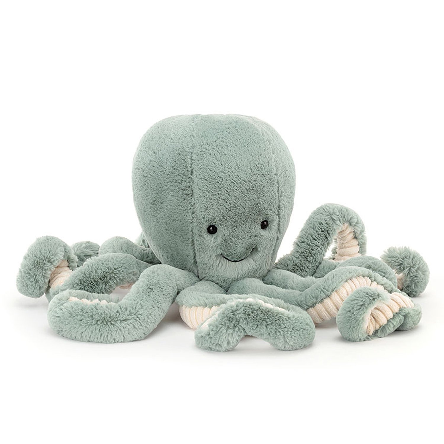 Dive to the depths for high adventure with wonderful Odyssey Octopus! Squishably soft in sea-moss green, with eight super-squiggly springy arms, Odyssey loves to give cordy cuddles. A splendid friend for any merfolk!