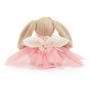 Lottie Bunny Fairy is so excited to mark her garden debut! This flopsy-eared dancer wears ribbons on her ears and a beautiful ballet costume. With a pink satin bodice, butterfly sleeves, petal peplum and three-layer mesh tutu, trimmed with a satin bow, it's the perfect outfit for a flower fairy!