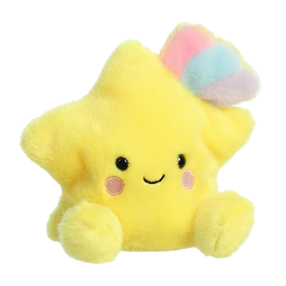 Pisces Star is a delightful plush with a soft yellow body and multicoloured pastel accents like a rainbow, resembling a shooting star. Her big, bright eyes and sweet smile radiate a sense of longing and dreaminess.