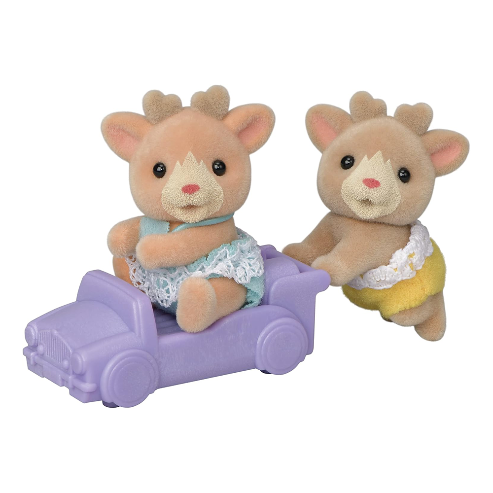 It’s widely known in Sylvania that twins mean more than double the mischief! Ginger and Ollie Snowdrift Reindeer Twins are too little to have any big adventures, but that doesn't stop them from having mini ones! With their favourite push cart, each twin takes turns spinning the other about.