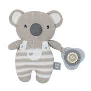 The perfect companion for on the go cuddles and fun. Made from 100% cotton knit and featuring a fun spinning rattle baby will love to pay with, this cute knitted toy will provide lots of entertainment for bub at home or on the go!
