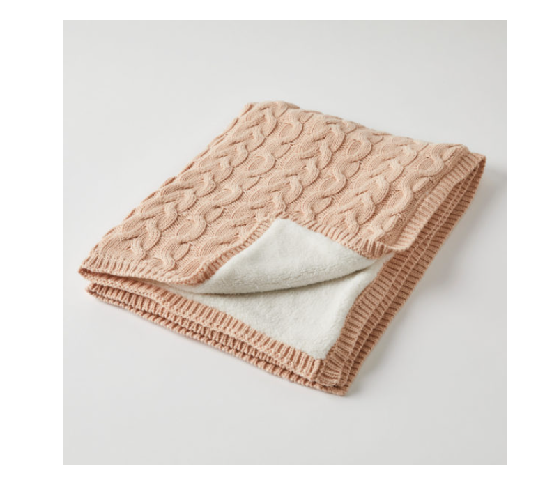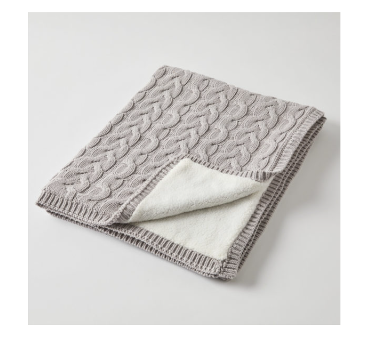 The Aurora Cable Knit Baby Blanket will keep little ones warm and cosy throughout the changing seasons. This cable-patterned double layer blanket is woven from cotton and backed with a plush natural coloured sherpa for added warmth. Ideal for strollers, cribs and on-the-go naps for babies and toddlers. This blanket, presented with a ribbon tie, is the ideal gift for new or expecting parents.