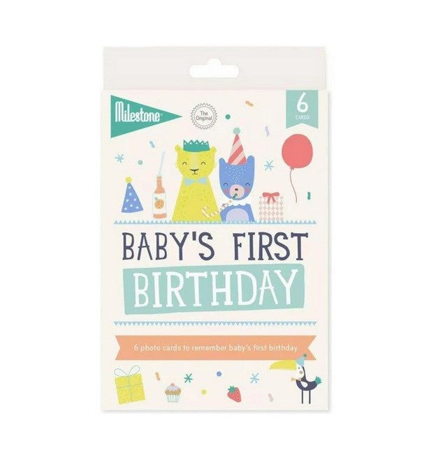 Use these picture-perfect milestone cards to record all those special birthday moments. Each card features a cute illustration and has a space for you to write the date, making it easy for you to snap a photo so you can remember those moments for years to come. In this set are 6 special moments of baby's birthday: My first birthday, breakfast, the gifts, the cake, the guests and baby's outfit.