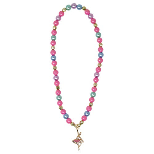 Pink Poppy's Ballet Dance Necklace is the perfect favor for your little one who loves ballet. Features colourful lustrous pearls, gold metallic beads, and a dangling gold ballerina pendant with rhinestone on the necklace.