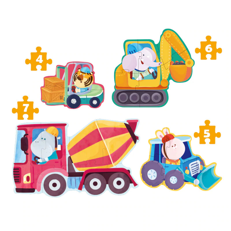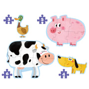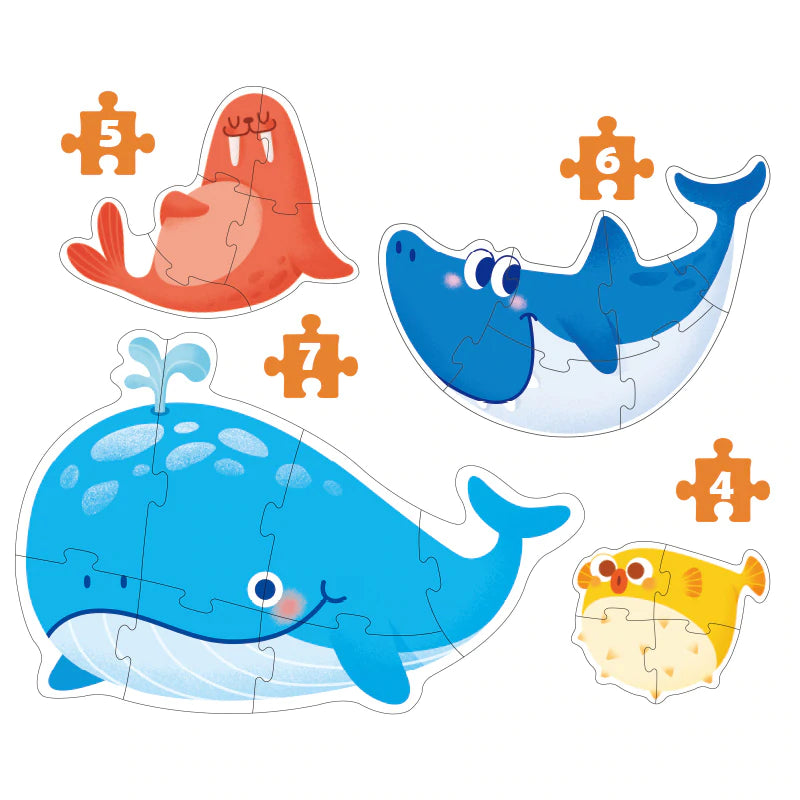 Suitable for toddlers and babies, these hexagon-shaped boxes feature four different puzzle patterns. The unique cartoon imagery of the designs makes the puzzle interesting and vivid, with the number of pieces increasing from easy to difficult. This helps train children's thinking ability and hand-eye coordination. The pieces are large, easy to grasp, and the colour of the backside is easy for them to distinguish. These puzzles are made with a matte and dark fringe pattern design which is non-reflective.