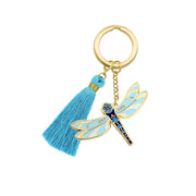 Materials: Gold metal and enamel, with tassel attached to keyring and chain.