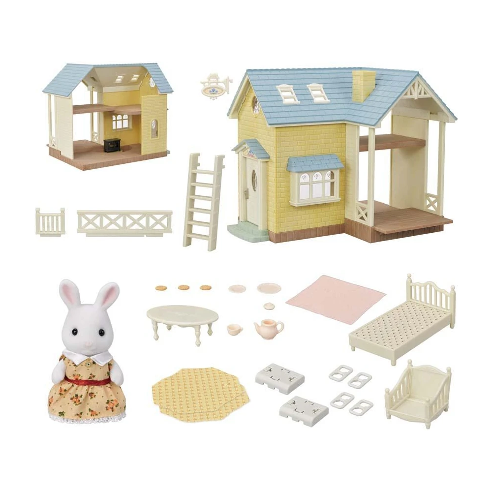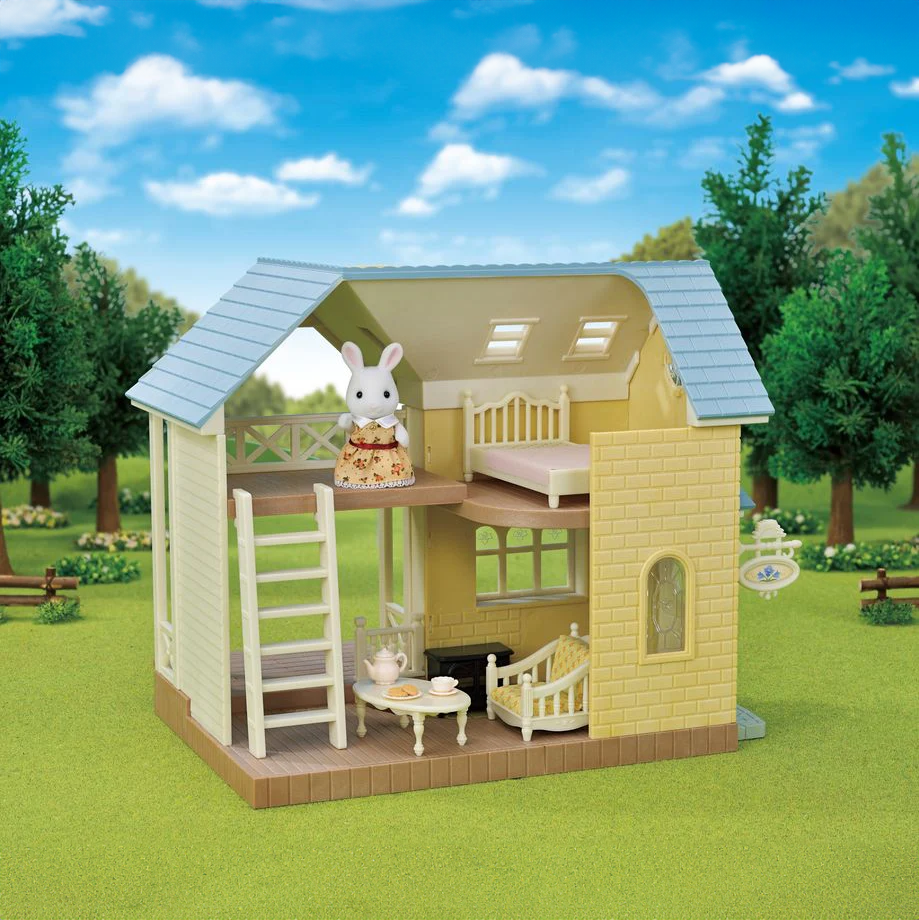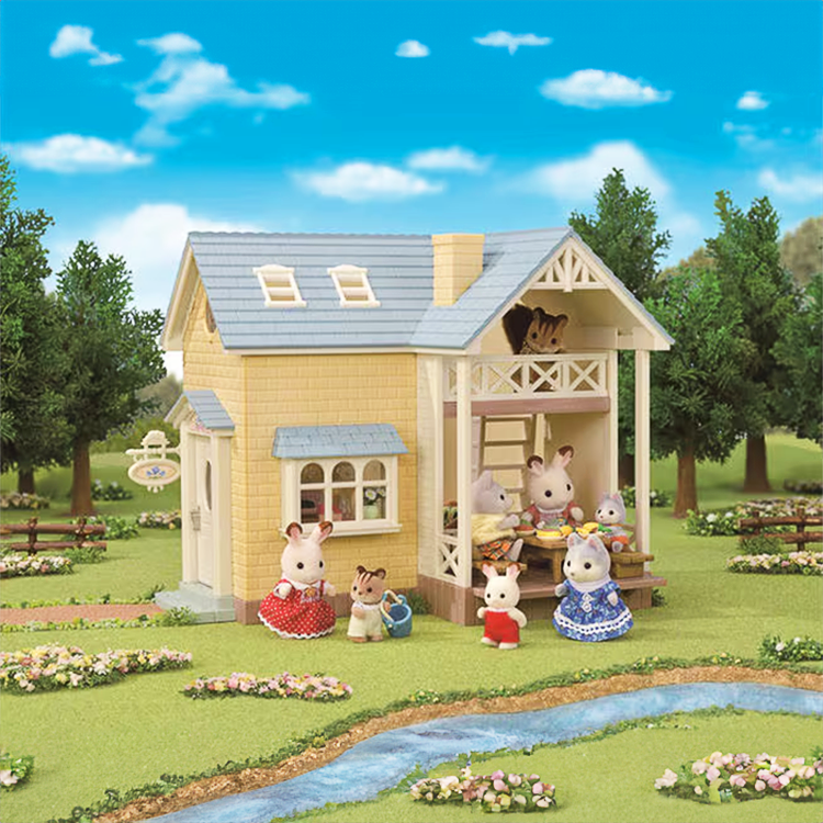 This pretty little house is Bluebell Cottage, which would make a wonderful holiday or second home for your favourite Sylvanian family! Found on the shore of Sparkle Lake in Sylvania, the verandah has perfect views over the shimmering water and surrounding scenery.