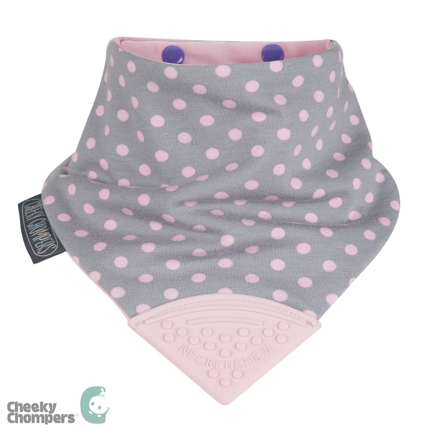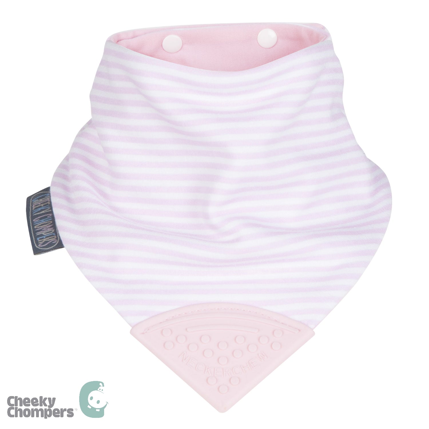 Our muslin Neckerchew has a soft and pliable textured silicone teether attached, so no more dropped and dirty teethers! Its innovative dimpled design is perfect to massage sore little gums and help those teeth break through.