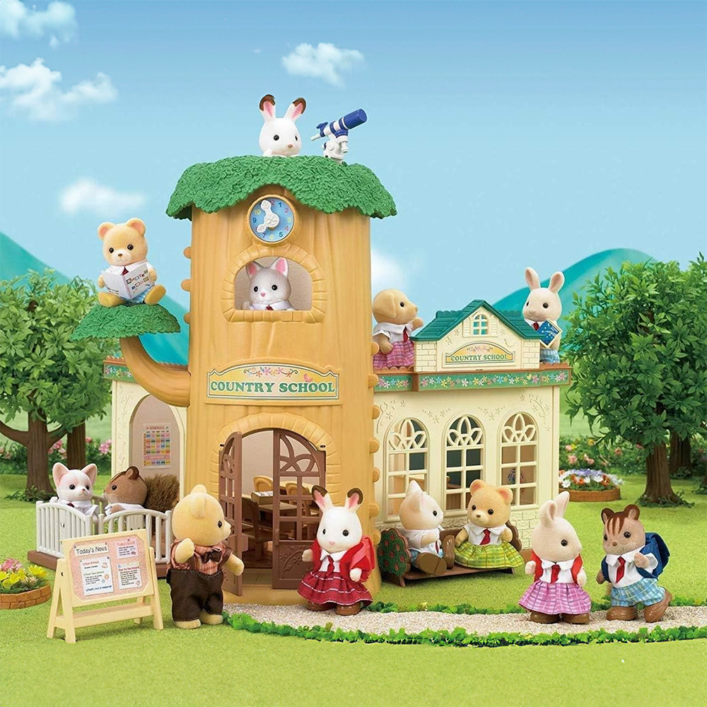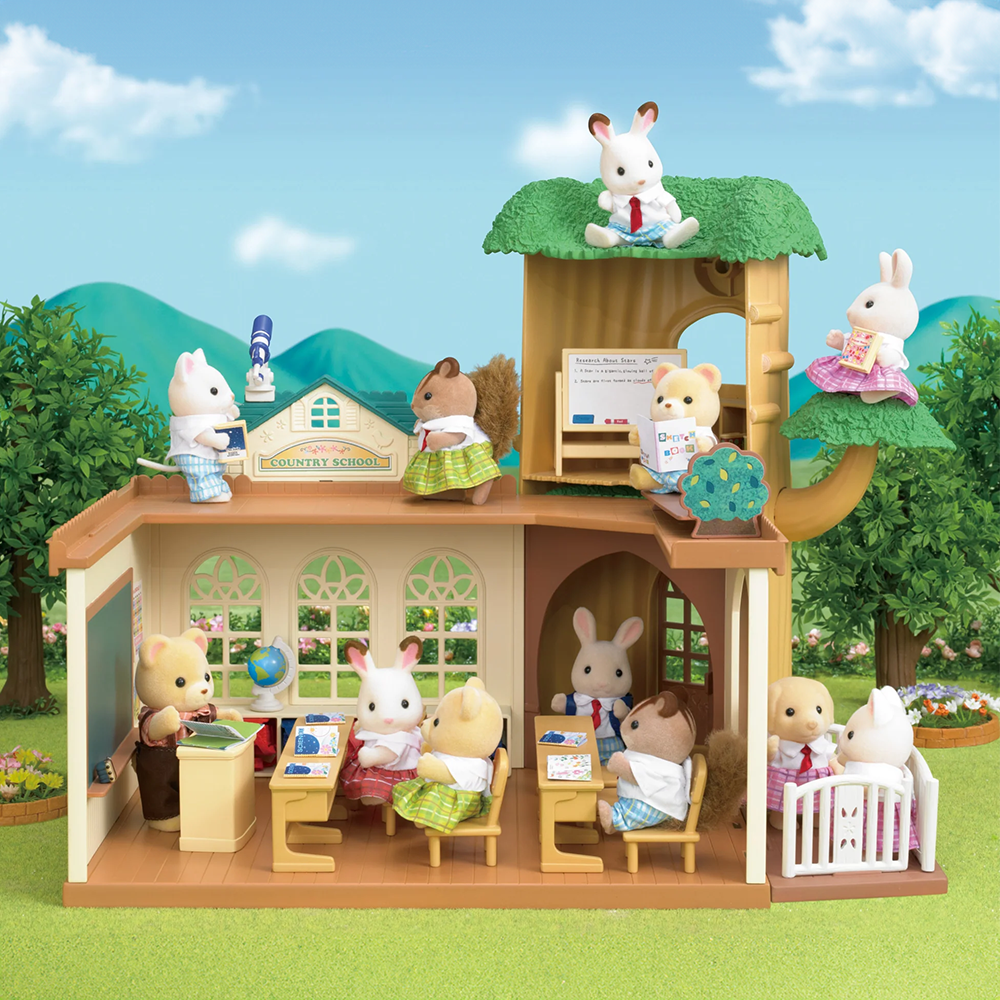 The Country Tree School is such a fun school! Use the whiteboard during classes to teach up to 6 little Sylvanians their ABC's ... then when class is over, it's break time! There's lots of fun to be had climbing the large tree outside or venturing out to the balcony to look at the beautiful scenery outside. For any little star-gazers, there is a telescope fitted to the roof which can also be connected to the tree for a better view!