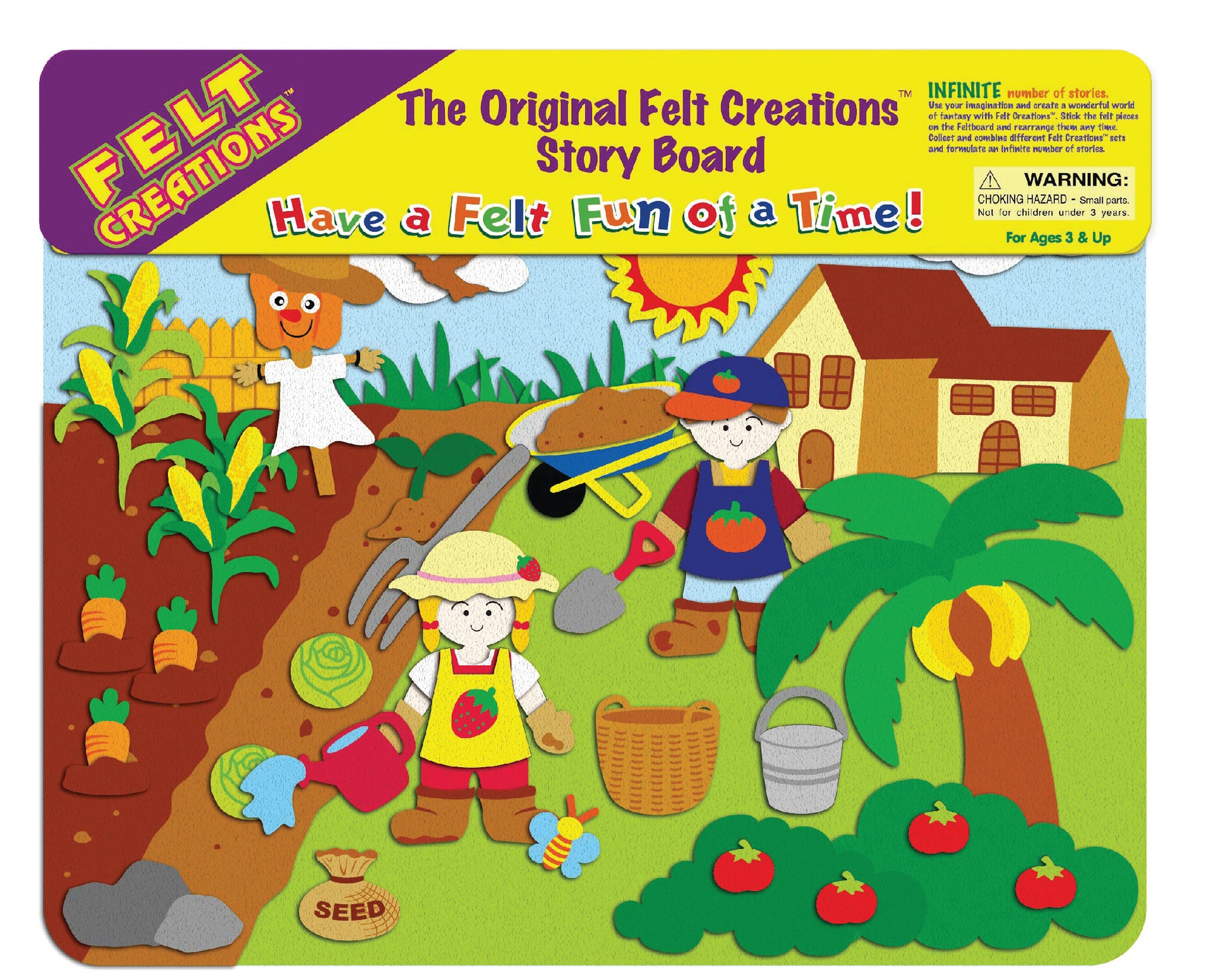Stick the felt pieces on the Felboard and rearrange them any time. Felt puzzles are non-messy and once a scene is completed, little ones can start all over again.