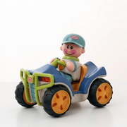 This sturdy All Terrain Vehicle (ATV) quad bike is built for adventure. With an exciting pull-back action, kids can watch it speed across rough farm terrain, bringing playtime to life, includes a removable farmer, perfect for inspiring interactive and imaginative play. Whether exploring the fields or heading to the barn, this durable and earth-friendly toy is ready for any farmyard adventure! Wheat fibre is used in the manufacture of this product. This creates a naturally speckled finish adding to its natural charm and eco-friendly appeal.