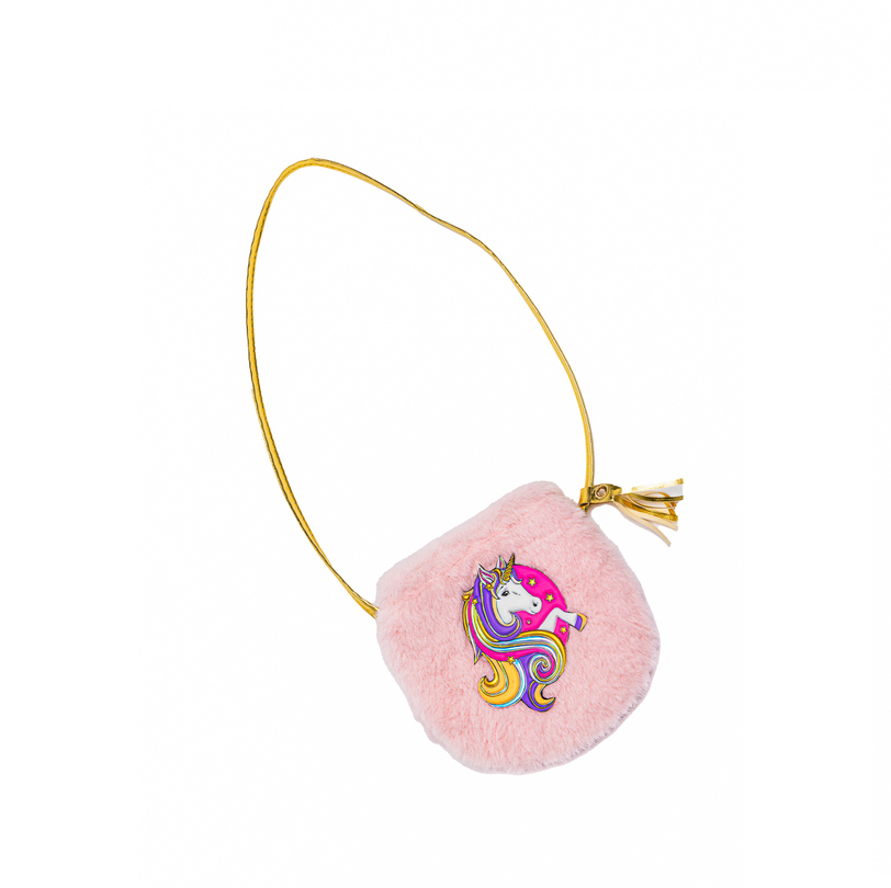 This small purse is embellished with soft, fluffy pink fake fur that resembles the shimmering splendour of a unicorn's mane. Its small size makes it great for storing your needs.
