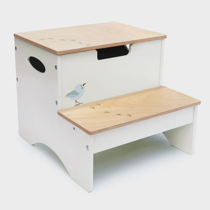 This step can be used to get to those out of reach places and has handy holes either side for easy carrying. Lift the top lid to find a secret compartment.