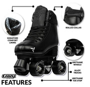 The Glitter POP from Crazy Skates features glitter infused boots, whilst the Jam POP is more understated in all Black with no glitter. These adjustable skates adjust to fit growing feet through the use of a patented internal size adjustment, that gives you 4 sizes in the 1 skate, making these perfect for growing feet. The Glitter POP has been designed to ''stand out from the crowd' - a classic retro design with a bright glitter rolled collar make these perfect for developing skaters who want the ability to skate either indoors or out, while wearing comfortable fitting skates and making a real fashion statement or roll stealth style in the tricked out all black Jam POP!