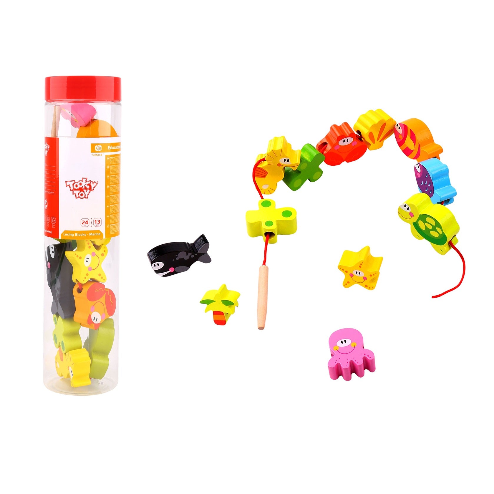 These wooden lacing Marine animals from Tooky Toy will help build fine motor skills and sea animal recognition, which are vital for early childhood development. Your child will have fun learning to lace a thread through these cute farm animals, building hand dexterity, hand-eye coordination and developing concentration and focus. Featuring cute figurines, these animals can also be played with for pretend play when not needed for lacing.