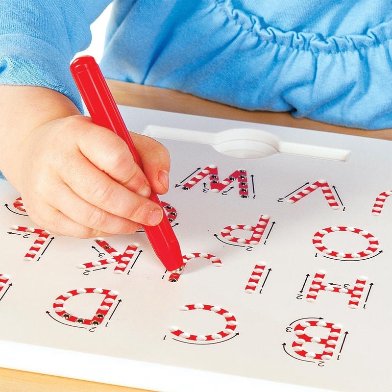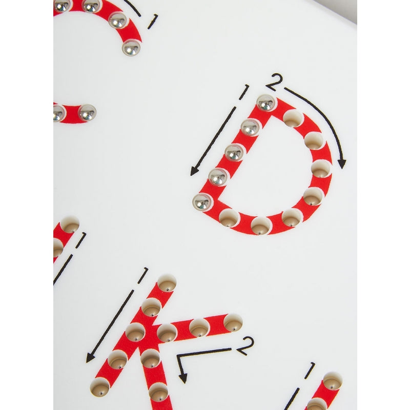 Following the arrows provides helpful up, down and sideways direction for young learners and once complete simply run the tip of a finger over the letters to 'erase' - letting the balls drop back down into their starting position.