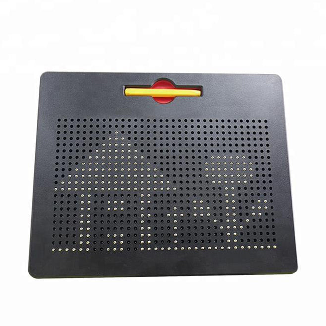 MAGPAD is a board with a perforated surface containing metallic beads underneath . A sophisticated magnetic tip partially extracts the beads into the surface allowing children to create different drawings,geometric forms, letters, numbers or any design; imitating the proposed templates included in MAGPAD or designing new ones. These creations will develop children´s spatial interpretation as well as their imagination in a fun and easy way.