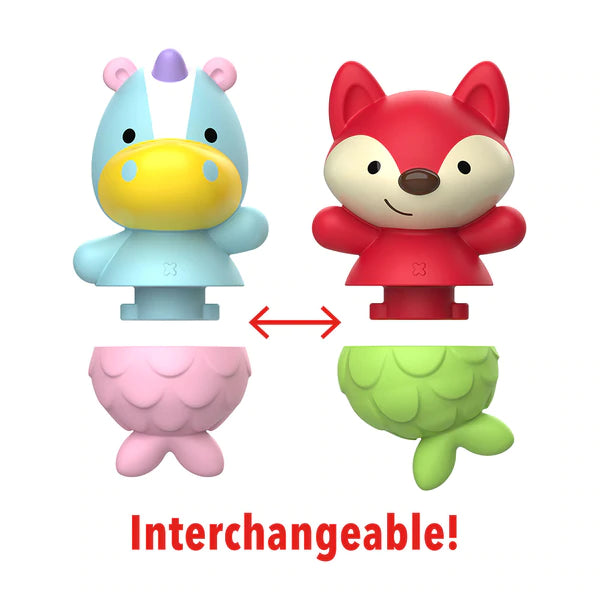 Switch it up at tub time with our cute mix & match mermaid bath toys set. Designed to twist apart, the mermaid tails are interchangeable for extra fun! Each two-piece bath toy is also easy to clean and floats in water. Soak up the fun with our full line of ZOO® baby and toddler bath toys.