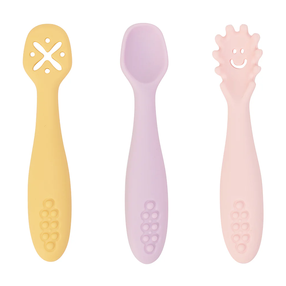 Learning how to use a spoon, fork or knife is tricky. This mini spoon set is perfect for learning to pick up food – these spoons are different shapes and styles to help your baby scoop, dip and grab.