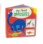 • My First OPPOSITES Board Book helps foster image and word recognition, as well as speaking and motor skills.