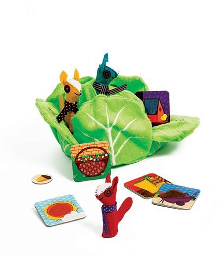 Can you find all the fun treasures that the McSquirrels are hiding in the soft, stuffed cabbage? Match pairs of textured cards by digging into the cabbage, or play a game of hide and seek and spot the missing squirrels.