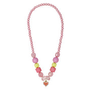 This chunky beaded necklace makes a perfect addition to her jewellery box with an assortment of geometric, matt, iridescent, pearl and even gem beads in pinks and lemon. It features dangling enamel heart charm frames in sparkling rhinestones.