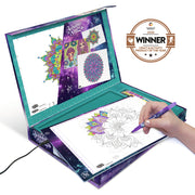 The LED tracing pad is extremely thin (only 5mm) and lightweight which makes it portable, stylish and practical. Easy to carry and store. The illumination is perfectly even, super bright and flickerfree. Ideal for tracing, calligraphy, designing & drawing. Touch sensor switch design. Turn it on/off and control the brightness easily just by pressing the button until it is just right. Comes with printed tracing sheets, sample pattern pages, 5 double-ended wooden pencils for a total of 10 colors and a USB cable. Contents: Ultra-thin tracing light pad ,USB cable , 5 double-ended coloring pencils , Black tracing pen ,Sample pattern pages ,10 printed tracing sheets , Storage box Suitable 7+years