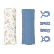 Organic Cotton Muslin Swaddles and Pram Pegs Set - Rocket
