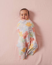 A must have for new babies and mummas. Our 100% bamboo swaddles are super soft and perfectly sized for bundling up baby. Swaddles help keep little ones snug and secure, and are a handy light layer for on the go. These swaddles are also an excellent comforter to last through those baby years! The Paper Daisy Bamboo Swaddle features sweet and simple daisies in a rainbow of colours on a white base.