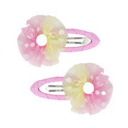 Pink Poppy's Pink Mesh Hair Clip is made by pastel pink and yellow soft tulle, decorated with white pom pom. Surely a cute add-on to perfect your look.