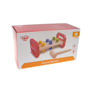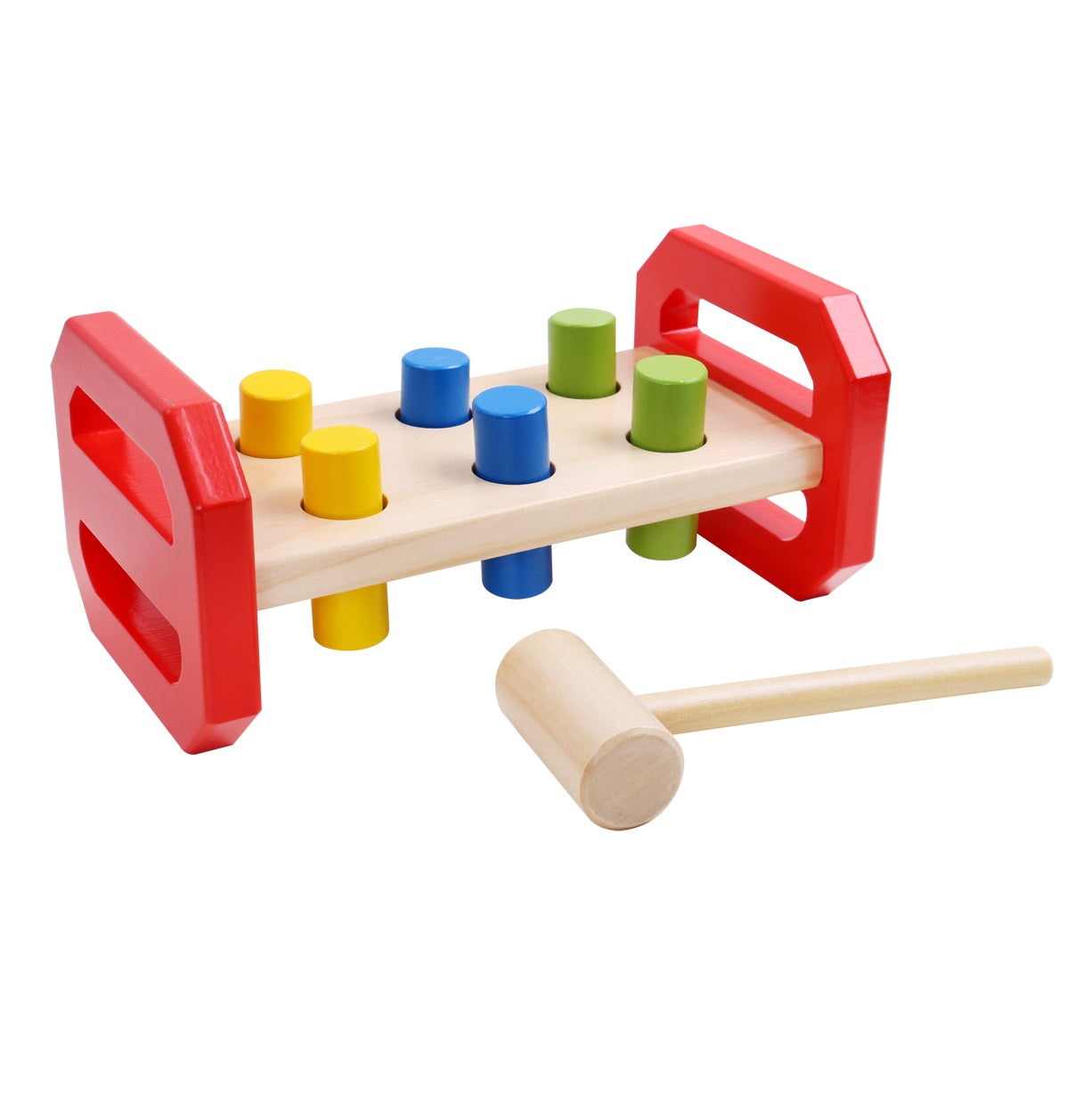 The hammer bench is a traditional toy that young ones will love. Tap with the mallet and the coloured pegs will go through the holes. Promotes fine motor skills, hand and eye coordination. Beautiful made and packaged. Paint used are nontoxic.