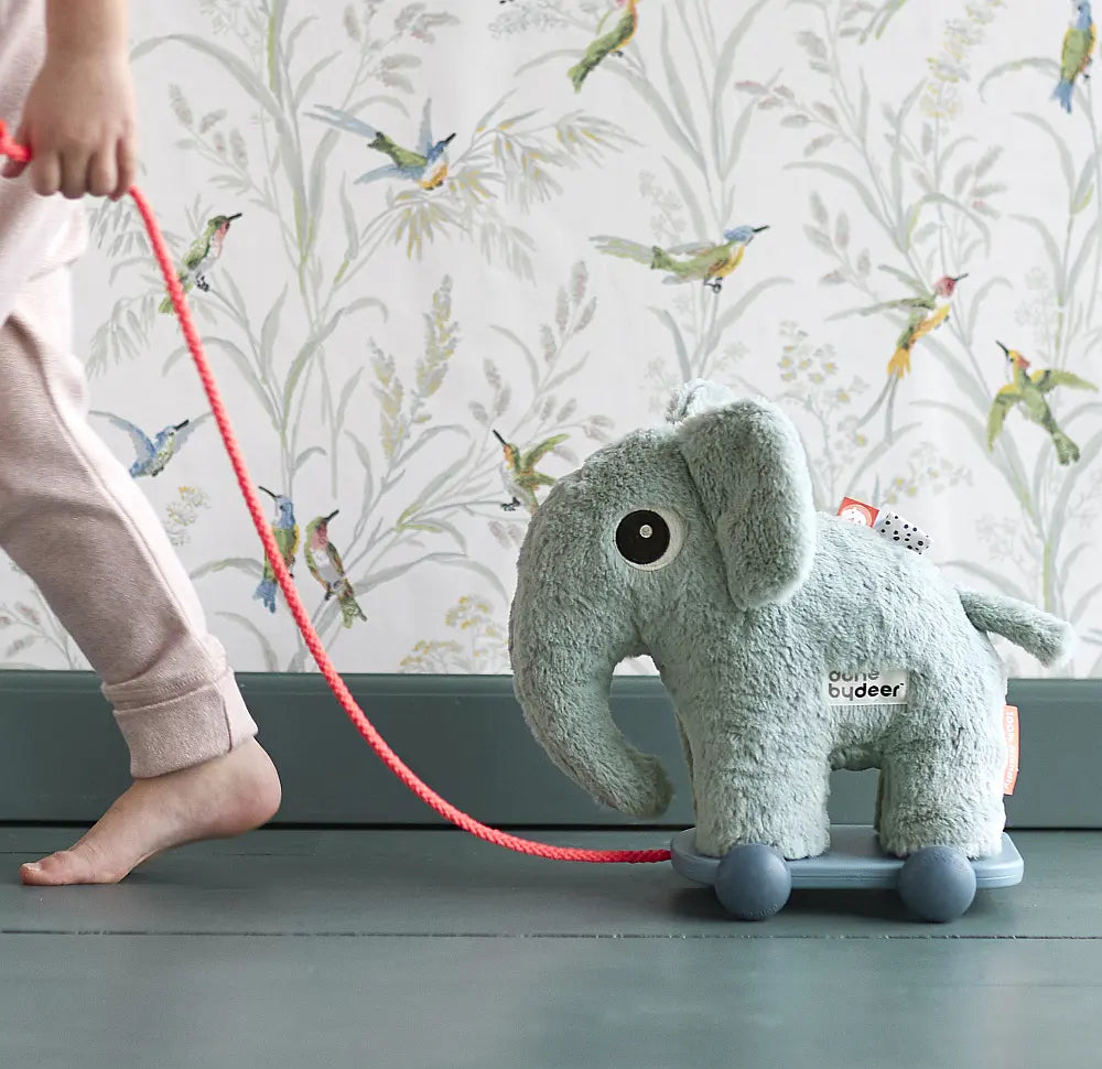 This cute pull along elephant follows your toddler around all day and at night, it comes off the platform and into bed. Ephee has magnets in her feet so your toddler'™s best friend can trot along during the day and hop into bed at night without any hard bits.