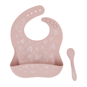 Silicone Catch Bib and Spoon Set - Dusty Pink